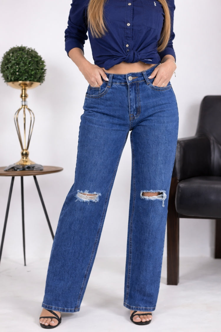 • Tiro alto que define la cintura • Corte recto que estiliza tus piernas • Detalles rasgados para un estilo moderno • Denim suave, resistente y cómodo • Ideal para outfits casuales con tenis o sandaliasDetalles del producto