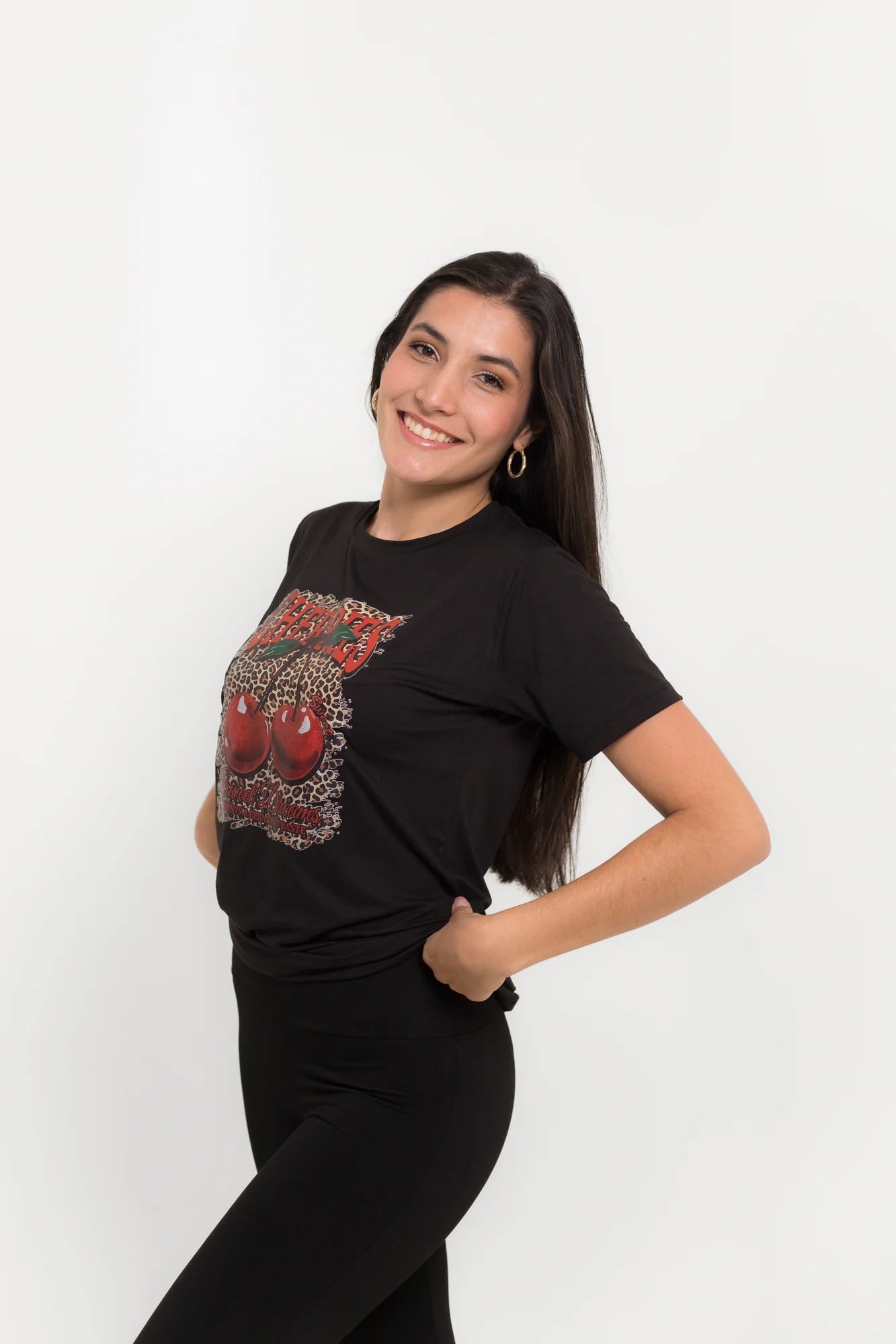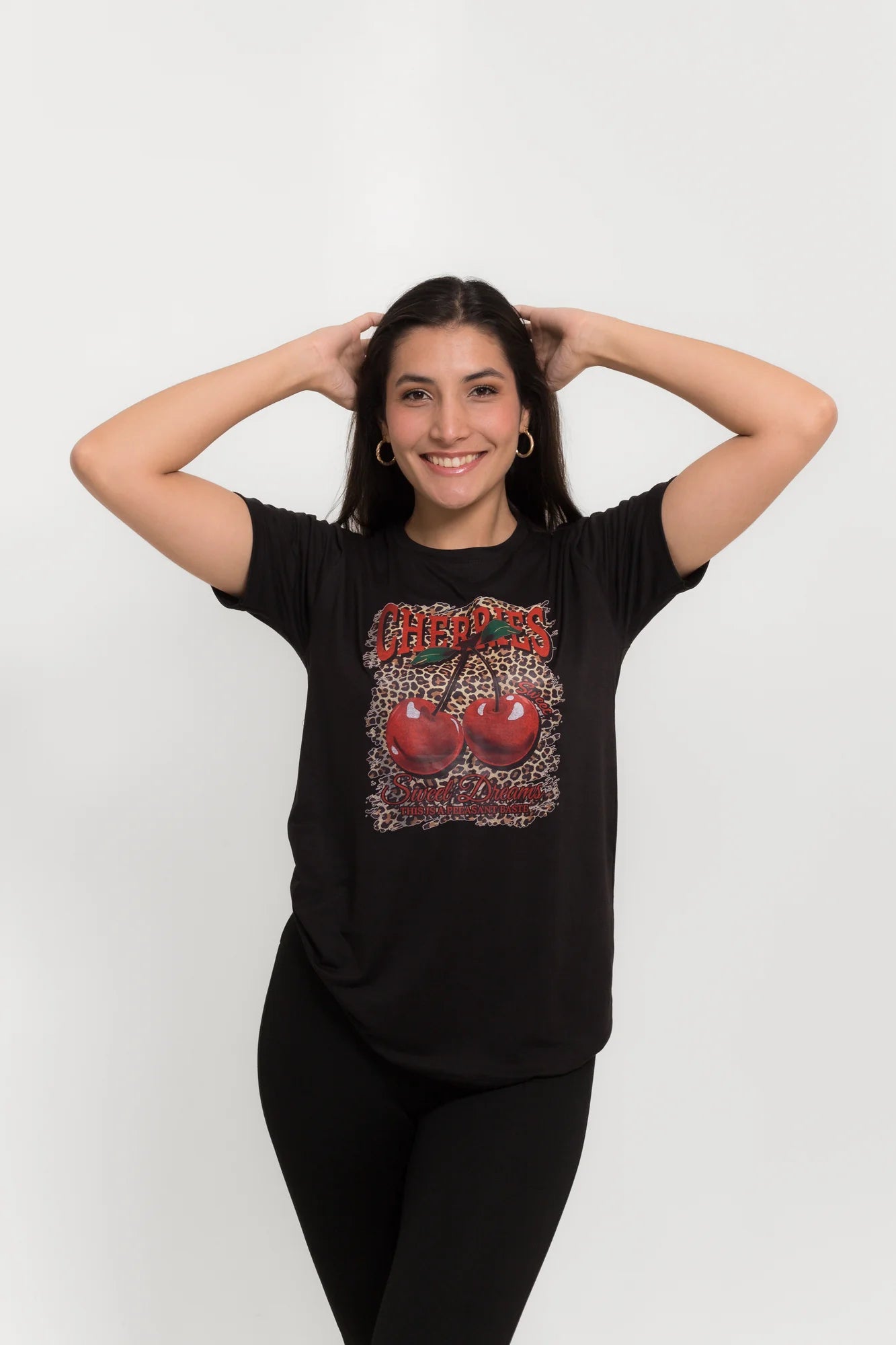 Dale un toque atrevido y moderno a tu look con la blusa oversized “Cherries”. Su estampado de cerezas sobre fondo animal print le da un estilo audaz y femenino que combina perfecto con jeans, leggins o pantalones acampanados. Es una prenda que resalta tu personalidad sin perder la comodidad.