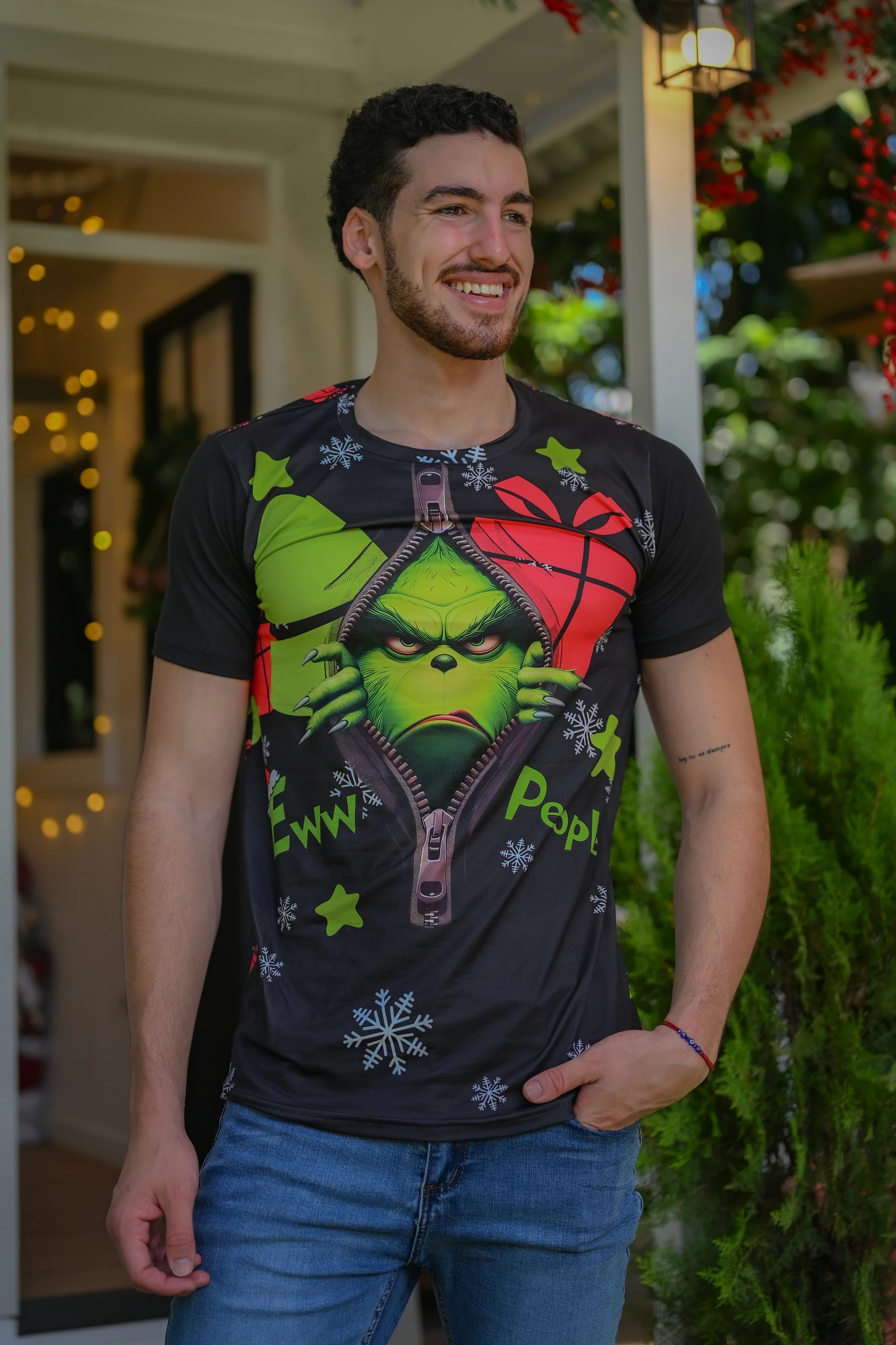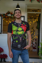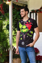 Dale un giro divertido y moderno a tu estilo esta Navidad con esta camiseta navideña verde con negro para hombre. Su diseño atrevido con gráficos en contraste es ideal para quienes disfrutan de un look original y diferente. Confeccionada en poliéster brushed, ofrece una textura suave al tacto, excelente transpirabilidad y una sensación ligera perfecta para el clima tropical.