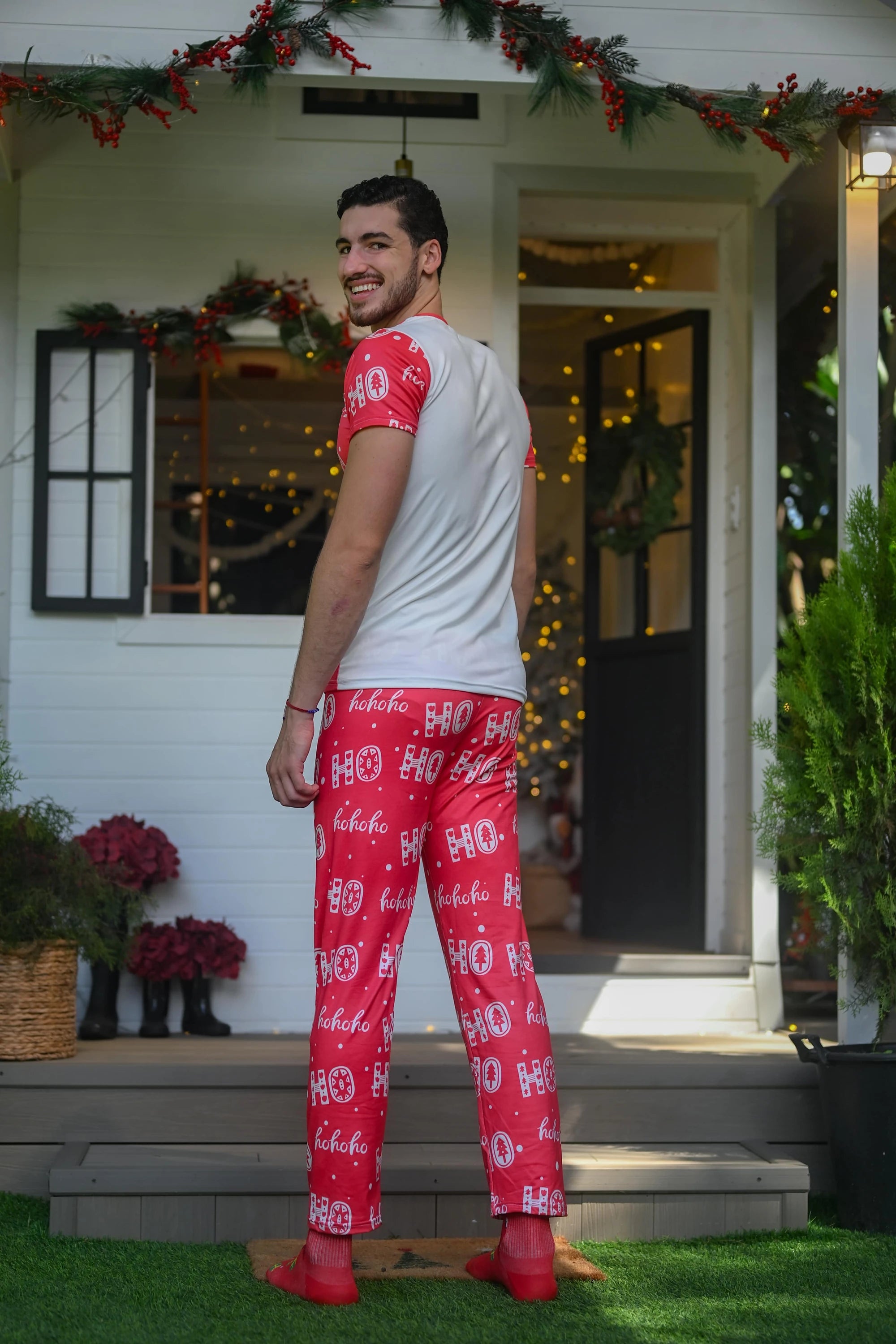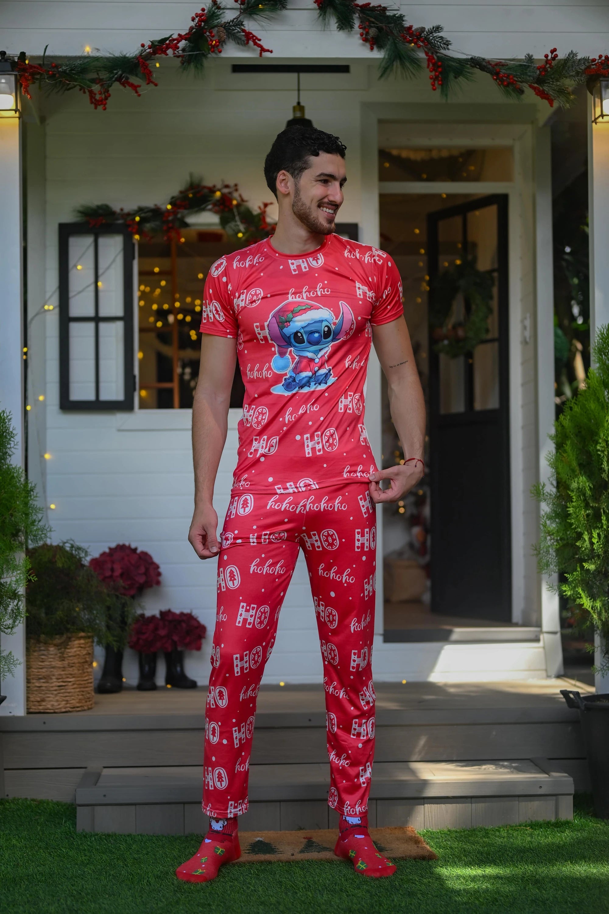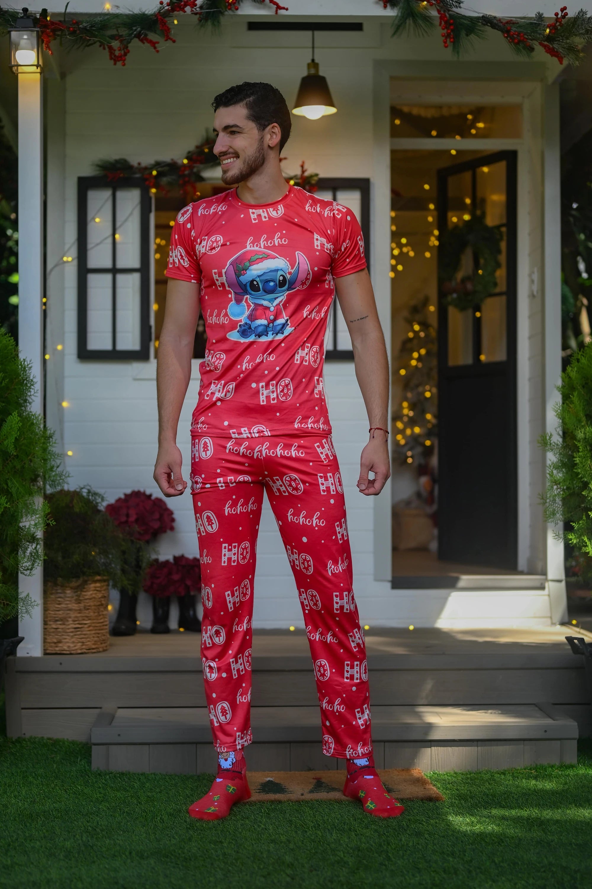Viví la temporada más alegre del año con esta pijama navideña para hombre. Su tela suave y ligera te brinda la comodidad ideal para compartir en casa, descansar o disfrutar de un ambiente festivo junto a tu familia. Su diseño con motivos navideños crea el conjunto perfecto para combinar con toda la familia.