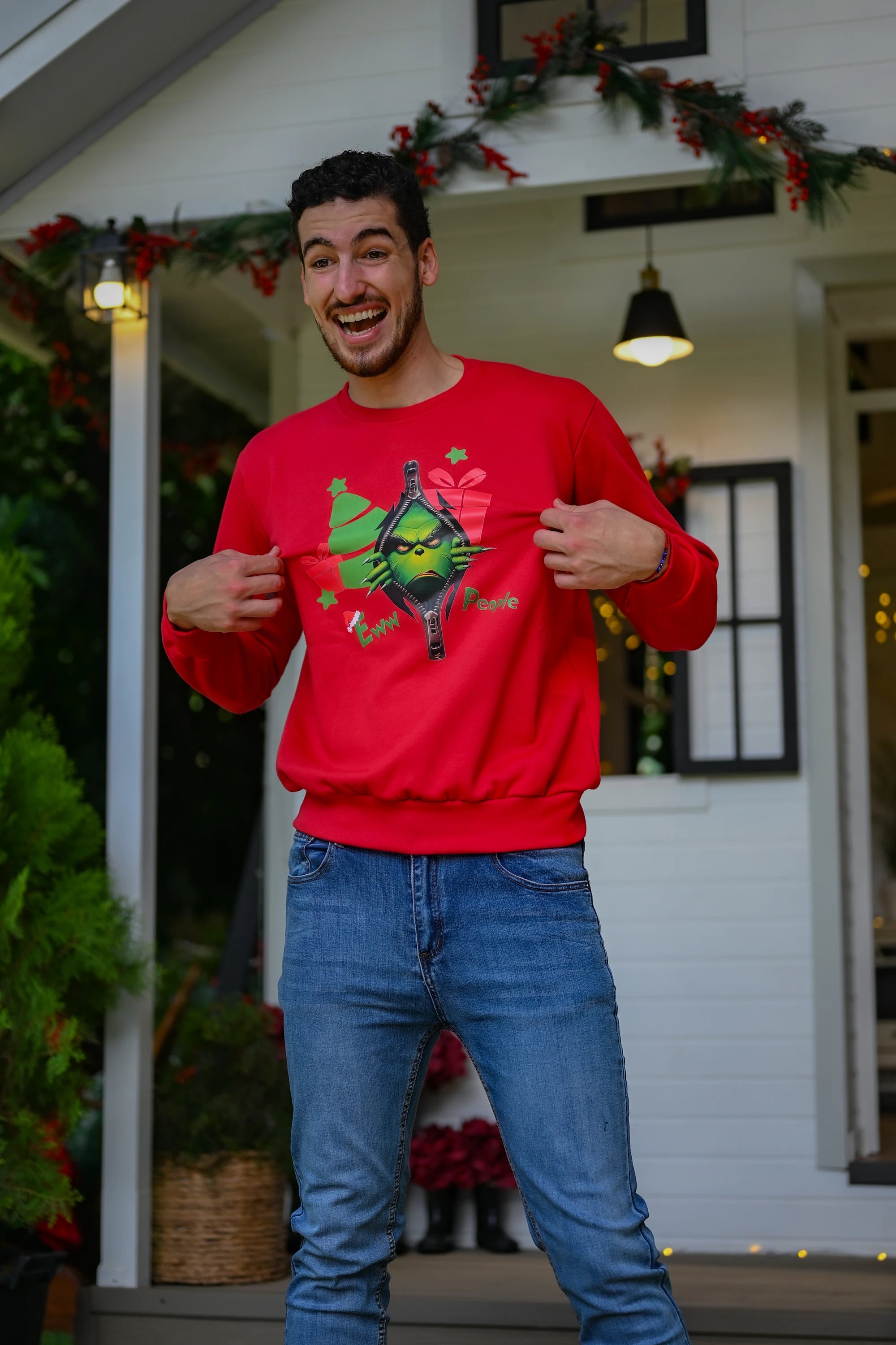 Sumate al espíritu de las fiestas con este suéter navideño para hombre, confeccionado en tela de algodón gruesa que brinda una sensación cálida y acogedora. Su diseño navideño con estampado divertido lo convierte en una prenda perfecta para celebrar con estilo, ya sea en familia o en reuniones festivas.